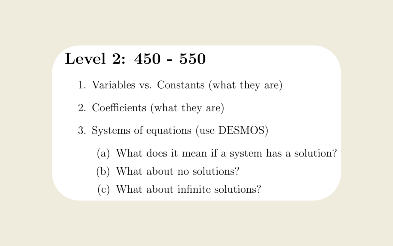 I make videos about the SAT Math on YouTube with over 13 million total views. Here are a few of my favorites! ❮ ❯ Free Resources 25 Challenging Problems These questions are all variations of 25 of the hardest problem types from the Fall 2024 and Spring 2025 SATs. Every Topic on the SAT Math Is it on the test? Is this worth studying for my score level? This document answers that. × Enter your email: I agree to receive promotional and instructional emails from LearnSATMath. Download PDF Please enter a valid email address.